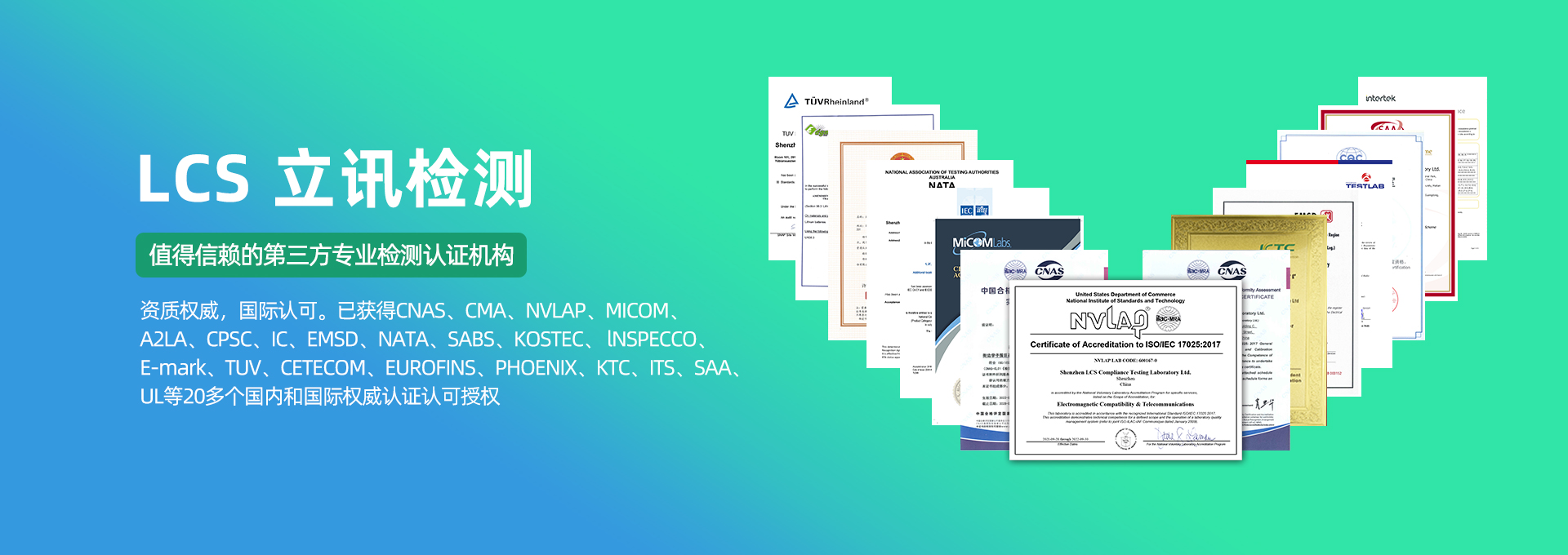 • 立訊檢測(cè)獲得國(guó)家級(jí)高新技術(shù)、專(zhuān)精特新企業(yè),已獲得CNAS,CMA,NVLAP,MICOM,A2AL,CPSC,IC,EMSD,NATA,SABS,KOSTEC,lNSPECCO,Emark,TUV,CETECOM,EUROFINSPHOENIX,HOENIX,KTC,ITS,SAA,UL等20多個(gè)國(guó)權(quán)威認(rèn)證認(rèn)可授權(quán)的第三方檢測(cè)機(jī)構(gòu)。
